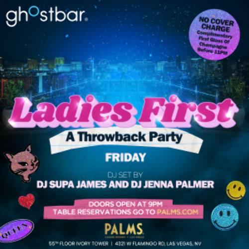 A night where style, sound, and celebration come together high above the Las Vegas Strip. The first glass of champagne is on the house for all ladies before 11PM. Resident DJ Jenna Palmer keeps the energy alive, spinning the biggest hits of the ’80s, ’90s, and early 2000s.