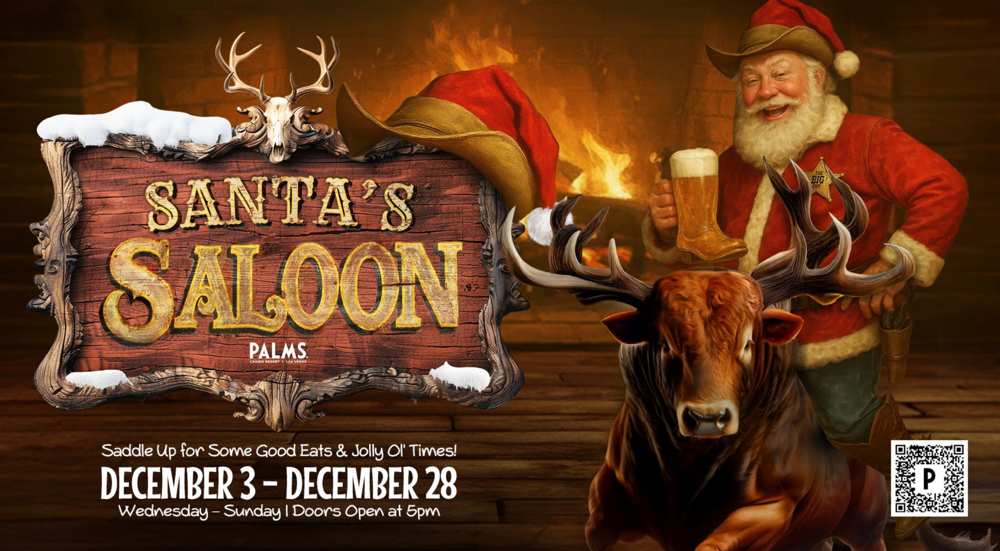 LAS VEGAS, NV (November 13, 2025) — Saddle up for some holly-jolly trouble, partner! This holiday season, Palms Casino Resort invites guests to step into a rowdy, cheeky, and totally unforgettable pop-up bar experience with the debut of Santa’s Saloon, opening select nights from Wednesday, December 3 through Sunday, December 28. Located on the casino fl oor near Scotch 80 Prime, equal parts Western saloon, adult holiday party, and theatrical spectacle, this immersive experience is packed with over-the-top décor, signature cocktails, outrageous performances, and festive food that bucks tradition. For more information click here.